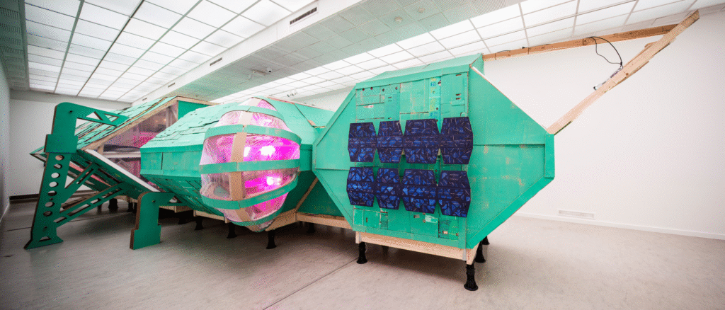 Seeker meanwhile extendd this thinking to cosmic scales while subverting traditional space exploration narratives, instead of sleek spacecraft designed by experts, he facilitated communities worldwide to build speculative vessels from local materials and knowledge where Philippine fishing communities incorporated traditional boat-building techniques and while Detroit residents used automotive industry scraps. This approach challenged the colonial, anthropocentric logic of conventional space programs of suggesting interstellar survival might in fact require abandoning human exceptionalism altogether. Like the “myth-making” practices, (such as Agnes Meyer-Brandis’s Moon Goose Colony), Seeker creates new narratives but crucially they emerge from collective imagination rather than a single artist’s vision, embodying what Jonas called for an ethics that considers how our actions affect more-than-human worlds.