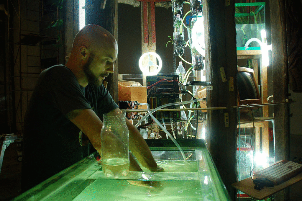 It completely reshaped how I think about human-technology-nature relationships. This globally replicated project where communities build installations of computer waste heat sustains algae or plant growth while these living systems cool the electronics is a perfect symbiosis of the relationship. And I think what makes this work so powerfully post-humanist isn’t just about technical integration of the technologies but how Vermeulen surrenders the authorship to participants and organisms alike. From the workshop footage from Athens where homeless people, students, and the algae itself all became co-creators, dissolving hierarchies between human with non-human and natural with technological in ways that directly confront the “co-creation with nature” versus “playing god” dichotomy we discussed.